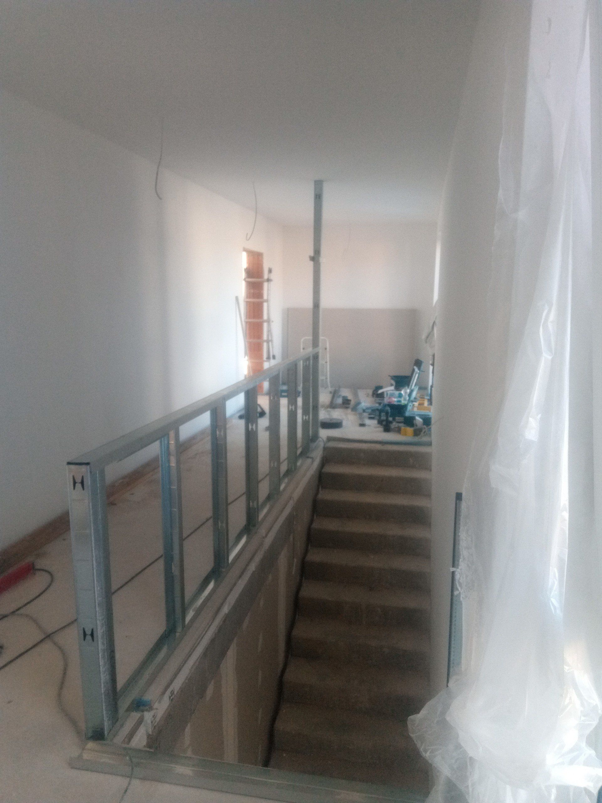 Demontage des Geländers und ersetzen durch eine Trockenbauwand mit 3 Fensteröffnungen
