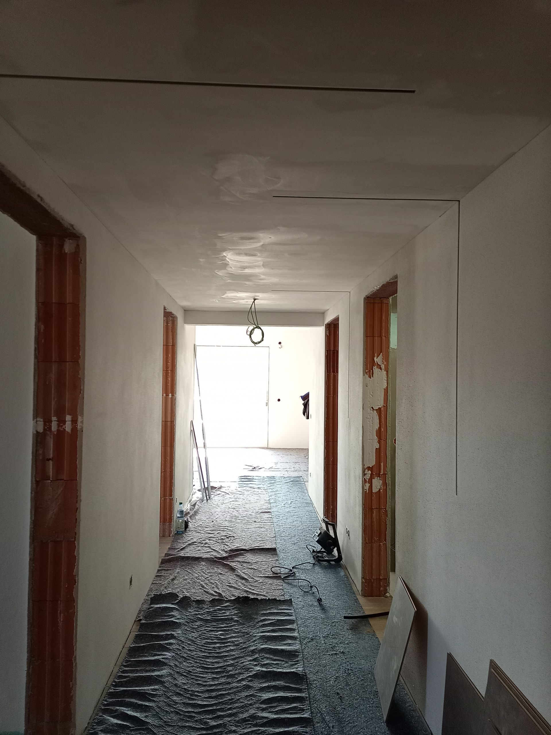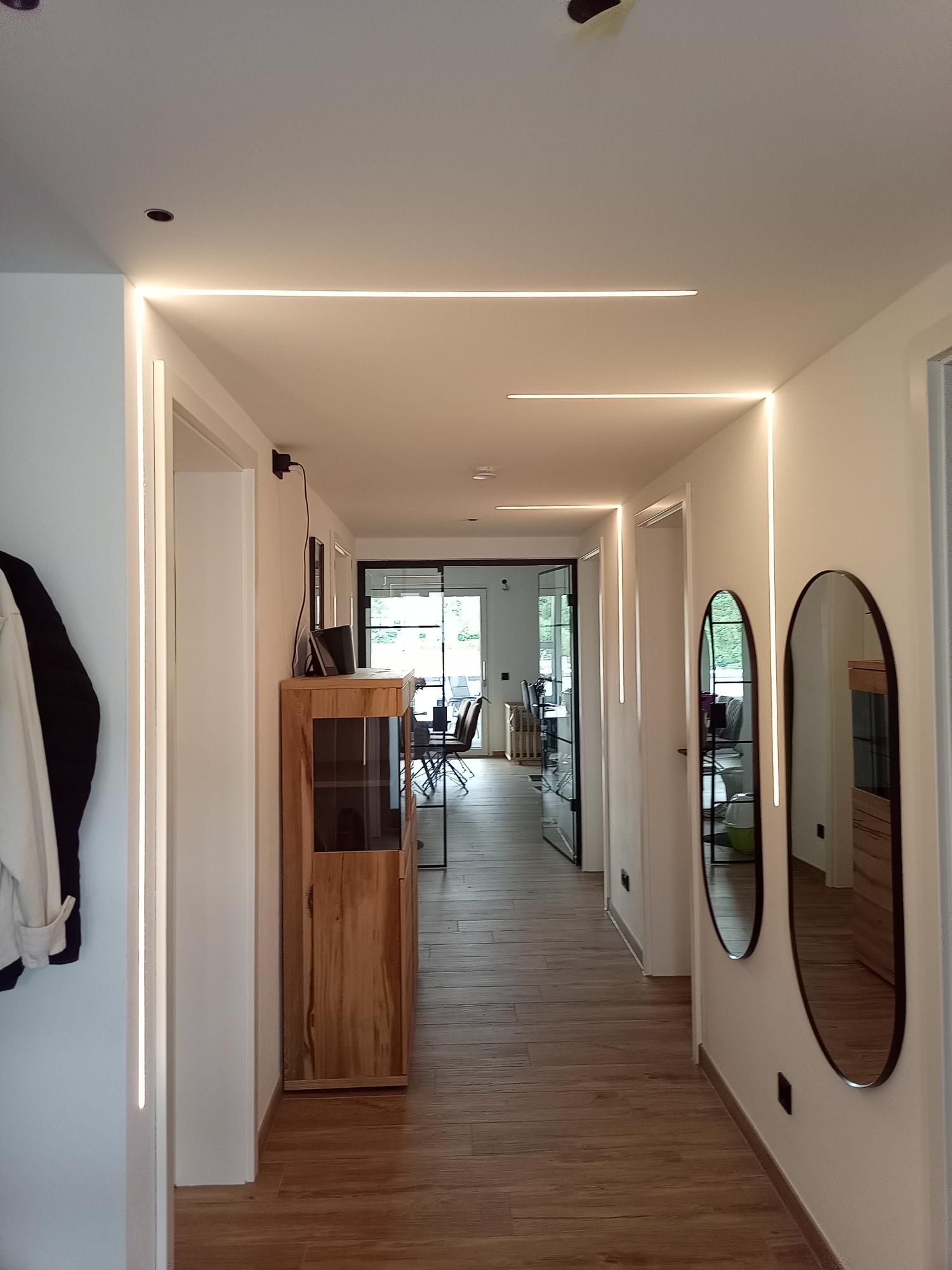 Trockenbaudecke im Flur mit eingearbeiteten LED Leisten